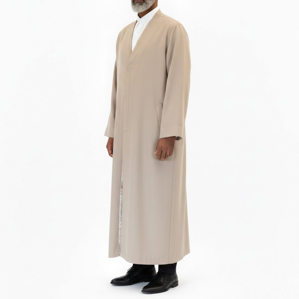 Buhara Yaka Yarım Astarlı Cübbe Bej
