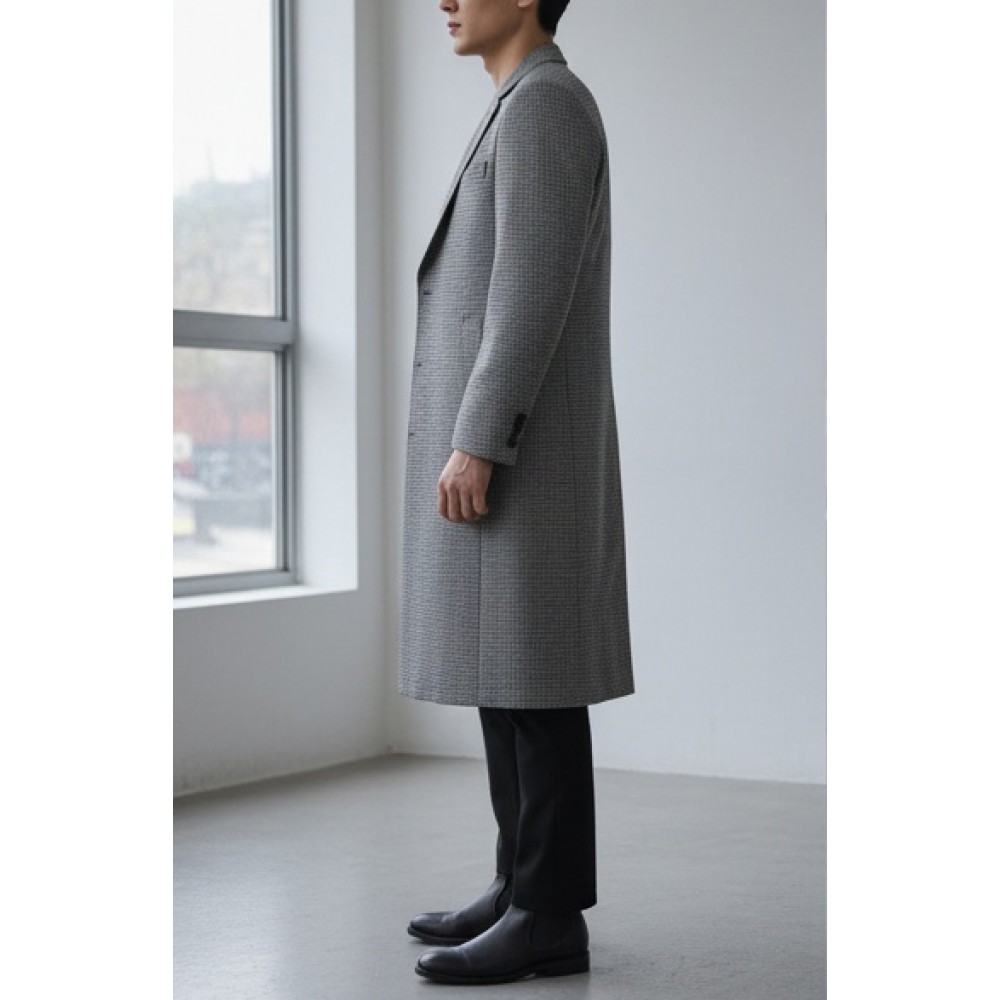 Ceket Yaka Tam Astarlı Kışlık Cübbe - Gri Ekoseli