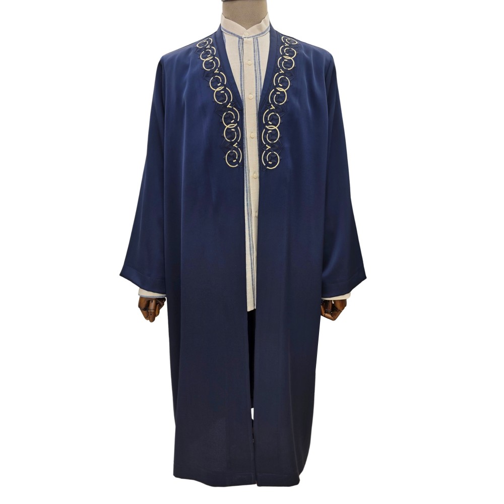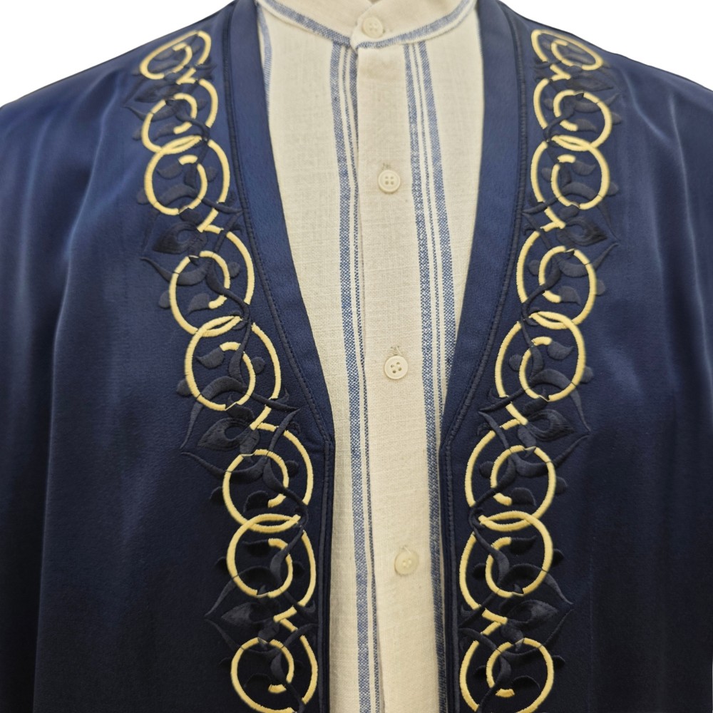 Buhara Yaka Kumaş Nakışlı Cübbe - Lacivert
