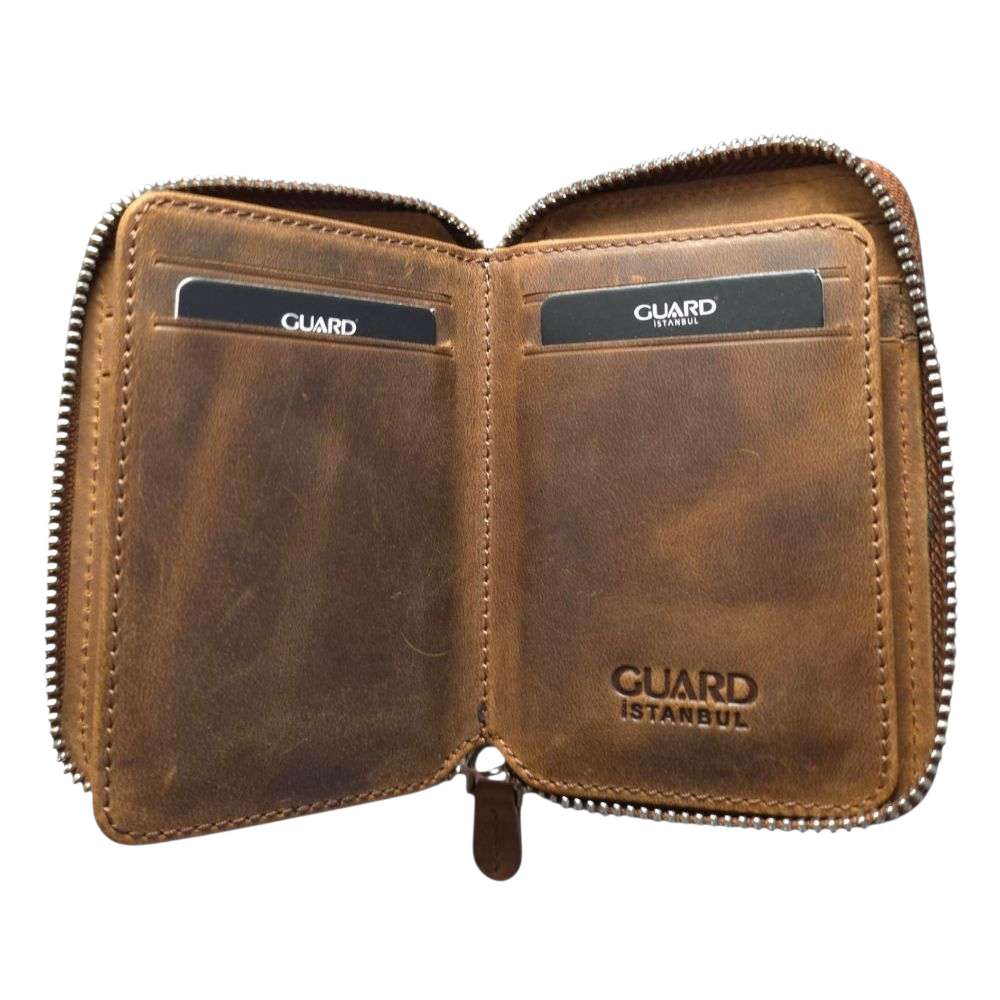 Fermuarlı Hakiki Deri Cüzdan Kahverengi