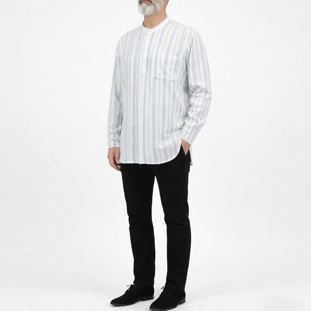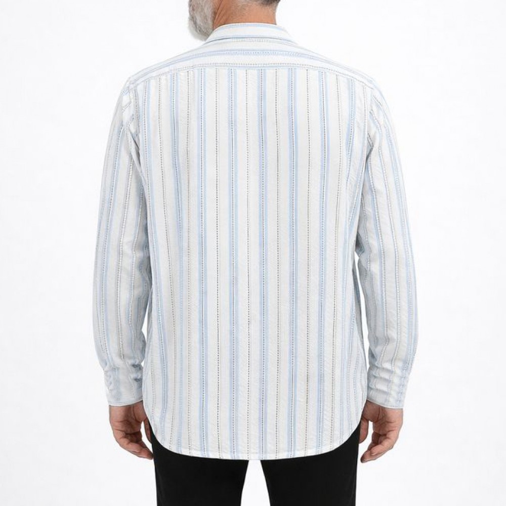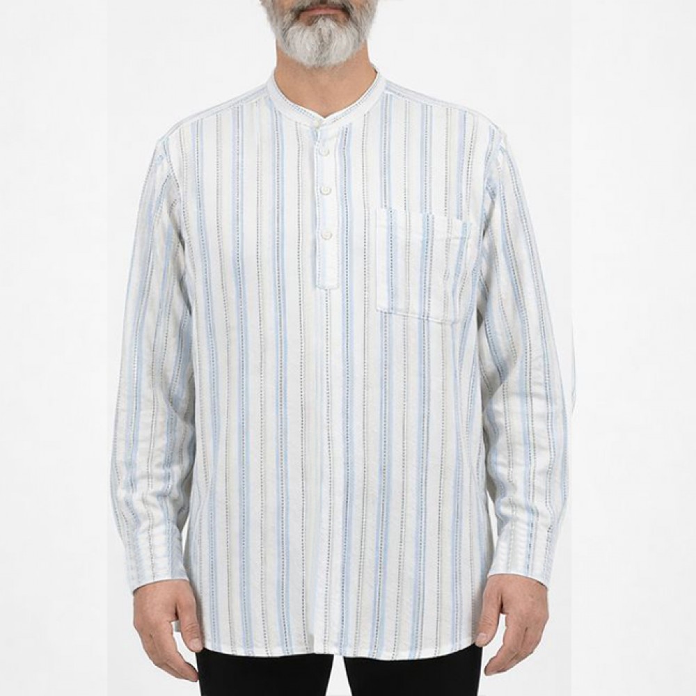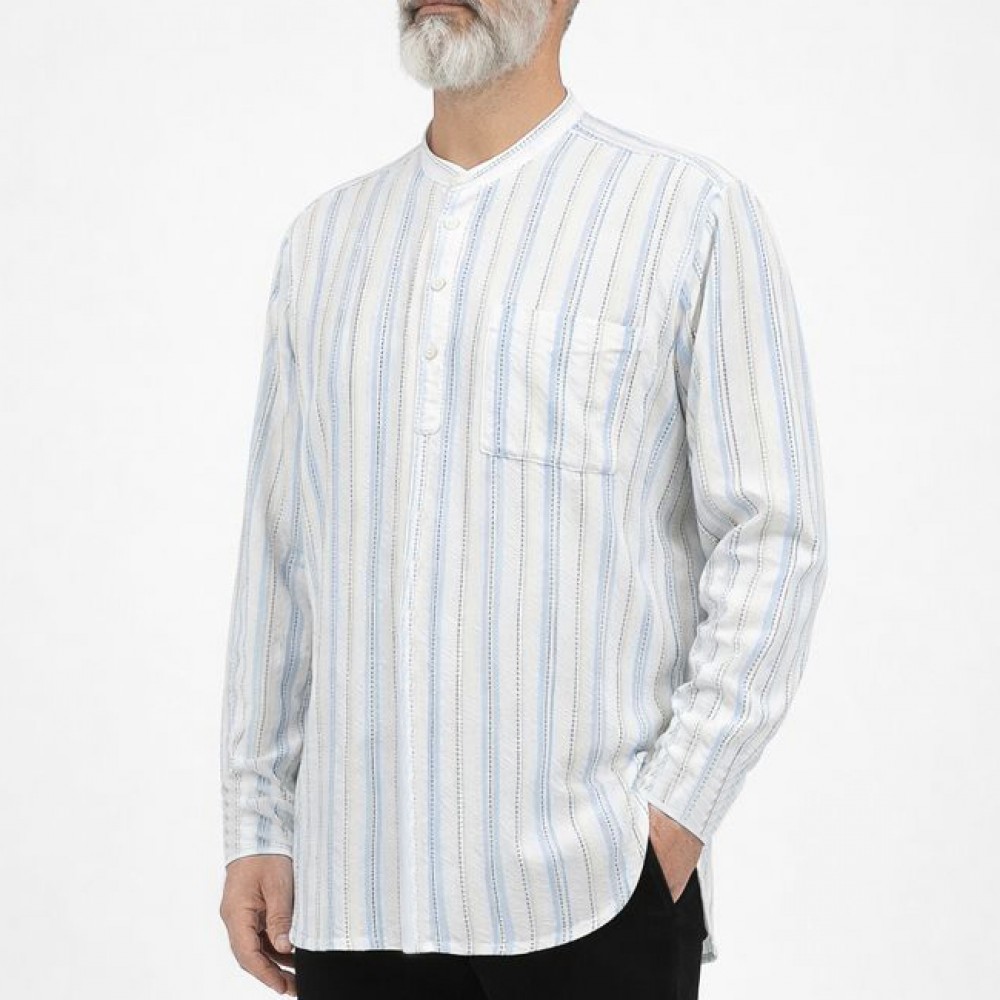 Hakim Yaka 3 Düğmeli Keten Noktalı Gömlek - Mavi