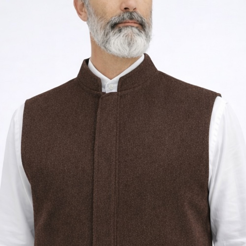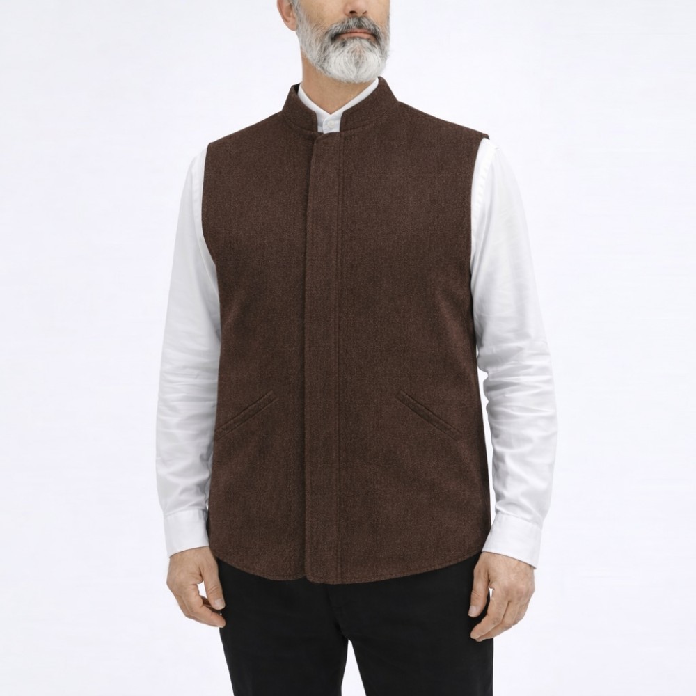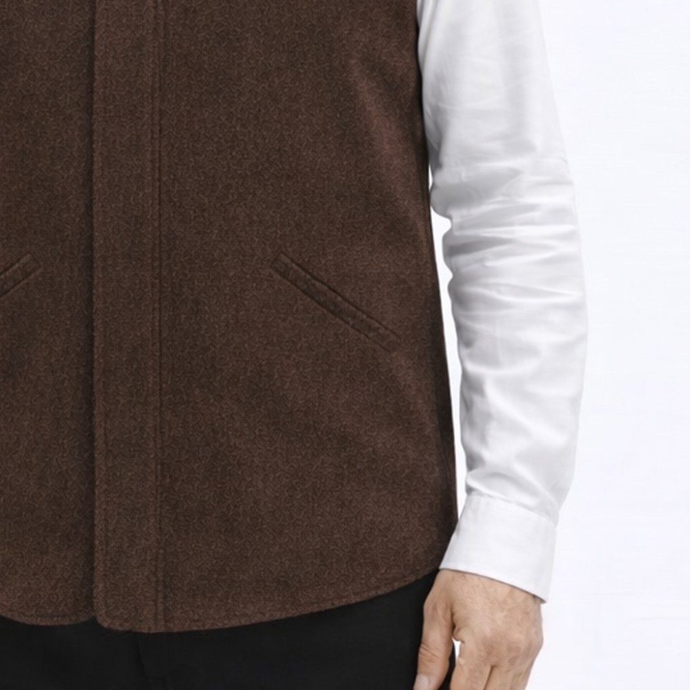 Hakim Yaka 2 Cepli Fermuarlı Kışlık Yelek - Kahverengi
