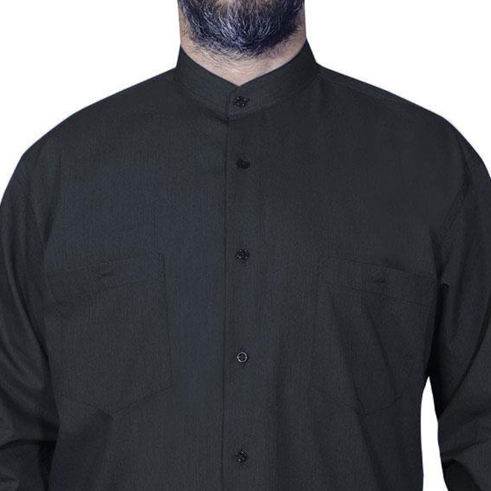 Hakim Yaka Çift Cepli Gömlek - Siyah