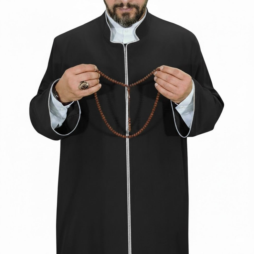 Hakim Yaka Biyeli Cübbe - Gümüş Biyeli Siyah